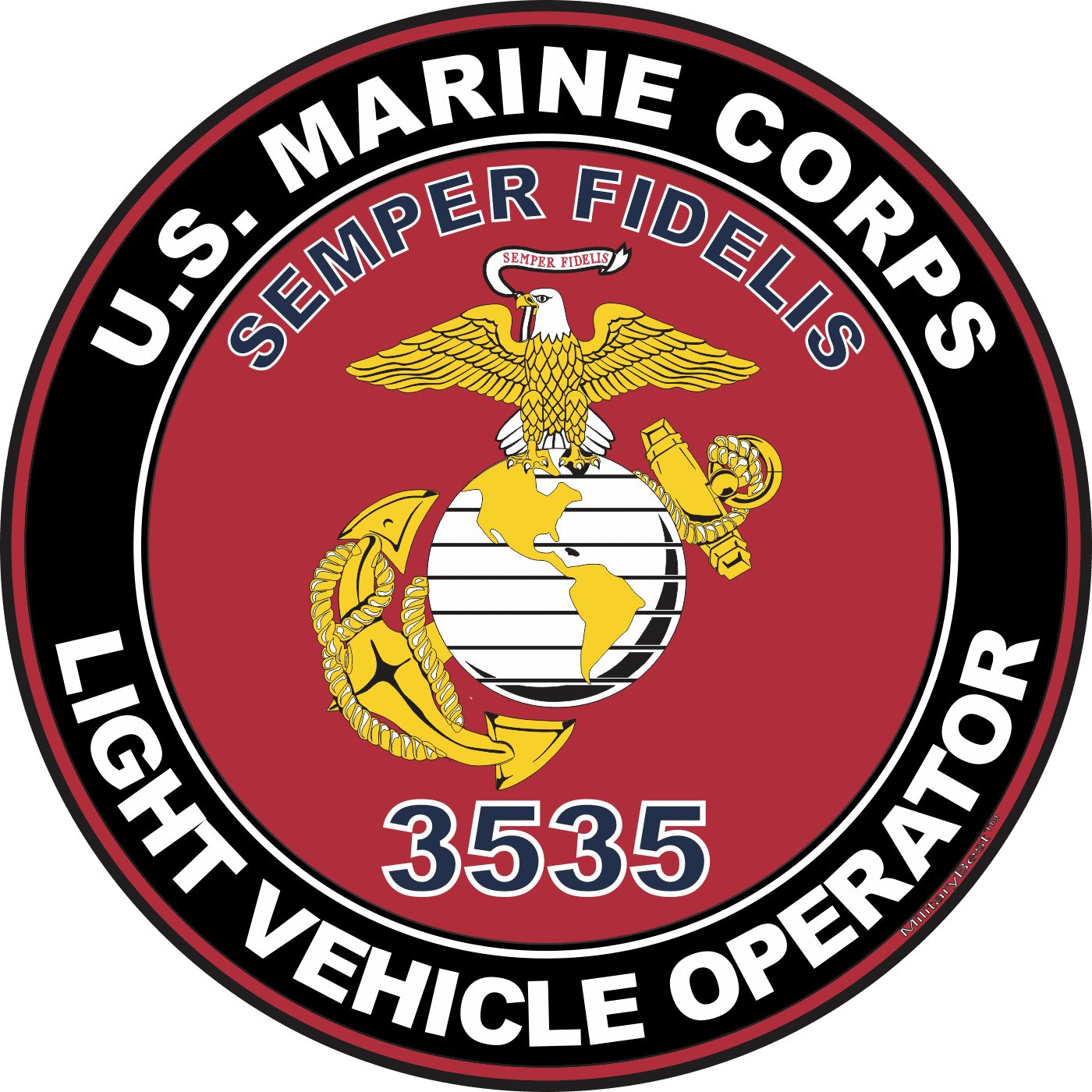 MilitaryBest is proud to offer this U.S.M.C. MOS 3535 Light Vehicle Operator Decal. This U.S. Marine Corps MOS Decal is a great way to show your Marine Pride. All MilitaryBest Marine Corps stickers are printed using high-quality vinyl and U.V. resistant ink. Each is then cured, laminated and die cut for a beautiful crisp, clean and professional look. This U.S.M.C. MOS 3535 Light Vehicle Operator Decal, as well as, any other MilitaryBest.com decal is proudly Made in the USA at our facilities in Scottsboro, AL. Select desired quantity and size from the menu above.Features: