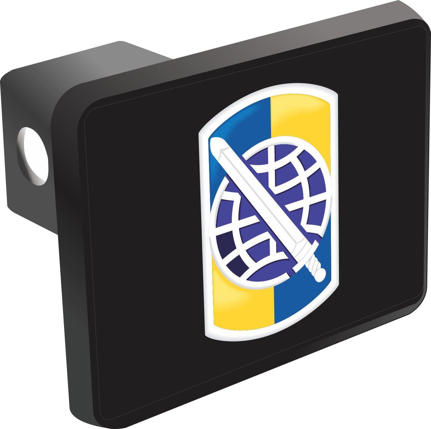 This 358th Civil Affairs Brigade Patch Hitch Cover is proudly Made in the USA. Each Hitch Cover's face plate measures 4.7" x 3.4" and is applied on a black heavy duty injection molded plastic 2" hitch cover; link pin not included. The face plate of the hitch cover is sublimation printed to provide a beautiful glossy finish sure to catch the eye. This hitch cover would make a wonderful addition to your truck or other vehicle.A percentage of the sale of each MilitaryBest item is forwarded to the licensing departments of each respective branch of service in support of the MWR (Morale, Welfare, & Recreation) program. These payments are made by either ALL4U LLC or the wholesaler from where the item originated. Our team thanks you for your service and your support of these programs.