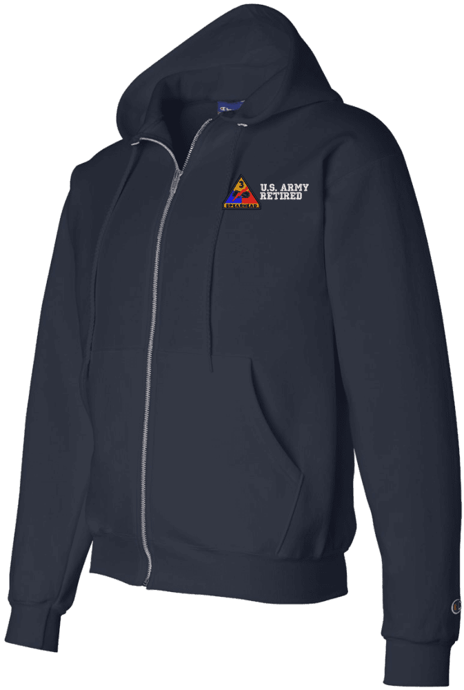 MilitaryBest is proud to offer this quality 3rd Armored Division Retired Zippered Hoodie. Each U.S. Army Zippered Hoodie is direct embroidered onto either a Champion or Gildan brand Zippered Hoodie using a 9.5 oz 50/50 Cotton Poly blend material. These Military Zippered Hoodies are proudly embroidered at our facilities in Scottsboro, AL.