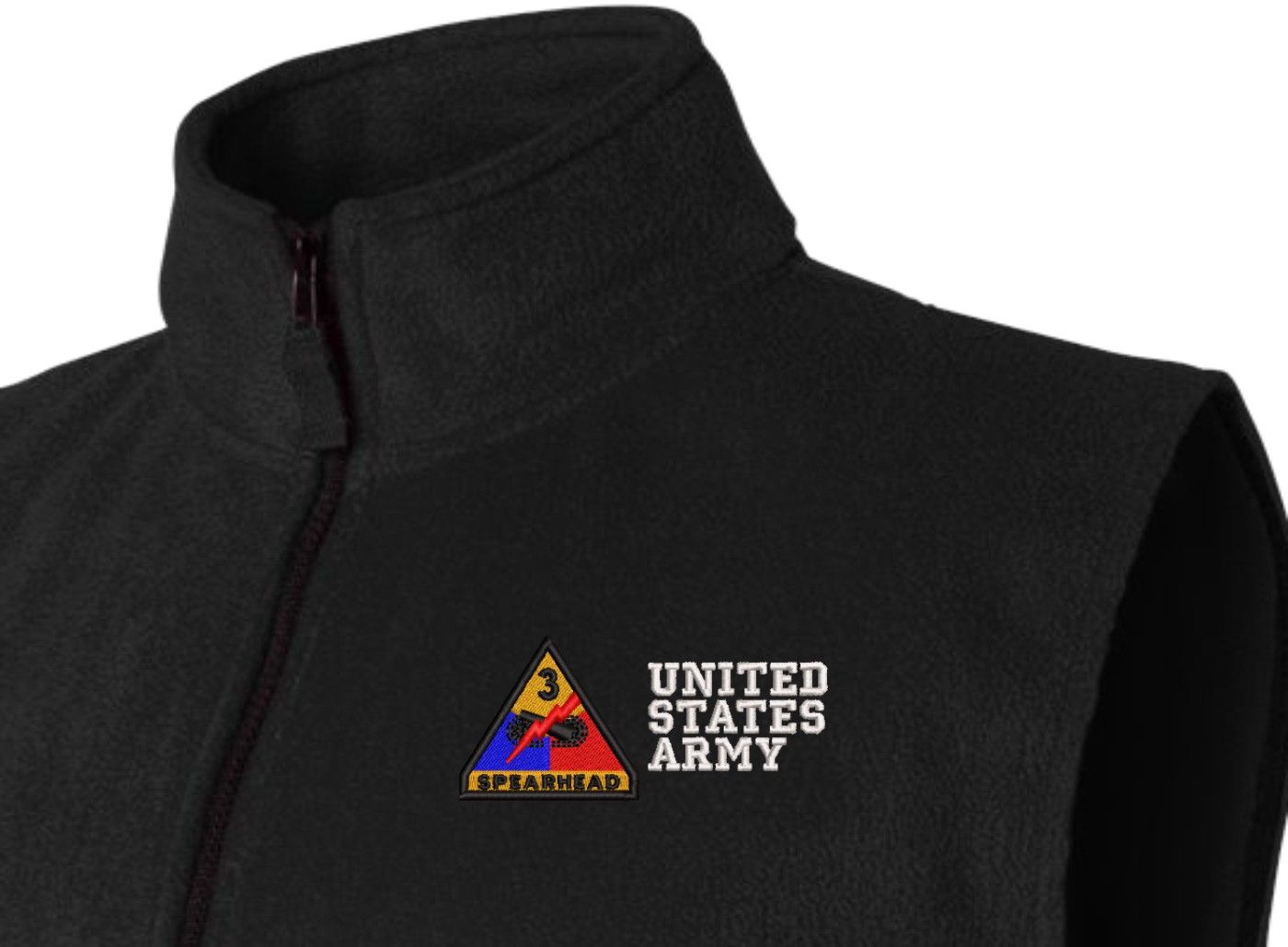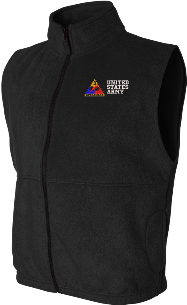 Due to supply chain disruptions, some colors and sizes may not be available in the same Brand, in these cases a brand of comparable quality will be used. Feel free to call in advance of your order, with questions you may have.MilitaryBest is proud to offer this quality 3rd Armored Division United States Army Full-Zip Fleece Vest. Our U.S. Army Full Zip Fleece Vest features a convertible collar with dyed-to-match zipper pull and oversized nylon reinforced slash pockets. These Military Vests are proudly embroidered at our facilities in Scottsboro, AL.