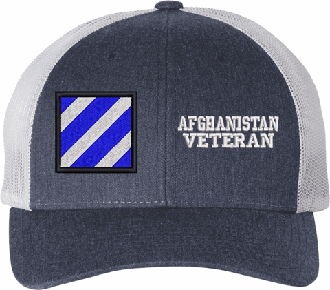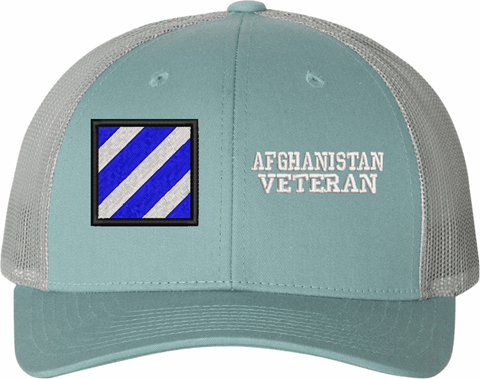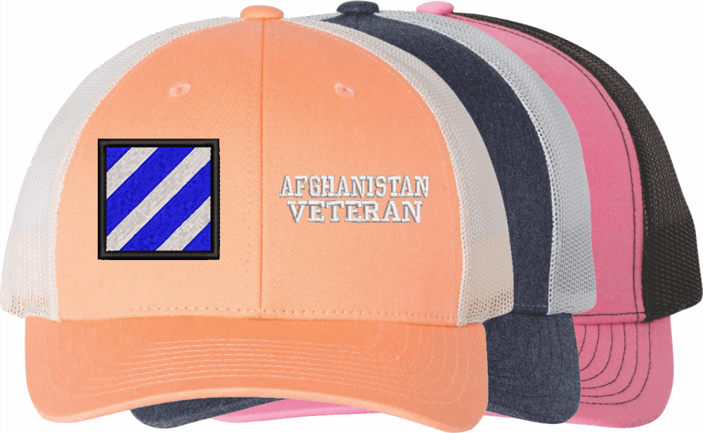 MilitaryBest is proud to offer this Mesh Back U.S. Army 3rd Infantry Division Afghanistan Veteran Women's Split-Cap. The design is embroidered onto a 6x panel mid/low profile mesh back cap and is crisp, clean, and sure to be loved by all! As with all MilitaryBest caps and apparel your satisfaction is guaranteed!Caps ordered with embroidered back text requires an additional 1 to 2 days of production time. All personalized caps will be embroidered in ALL CAPITAL LETTERS. Caps personalized with back text are not returnable unless there is a material defect in the cap.