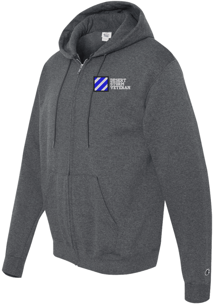 MilitaryBest is proud to offer this quality 3rd Infantry Division Desert Storm Veteran Zippered Hoodie. Each U.S. Army Zippered Hoodie is direct embroidered onto either a Champion or Gildan brand Zippered Hoodie using a 9.5 oz 50/50 Cotton Poly blend material. These Military Zippered Hoodies are proudly embroidered at our facilities in Scottsboro, AL.