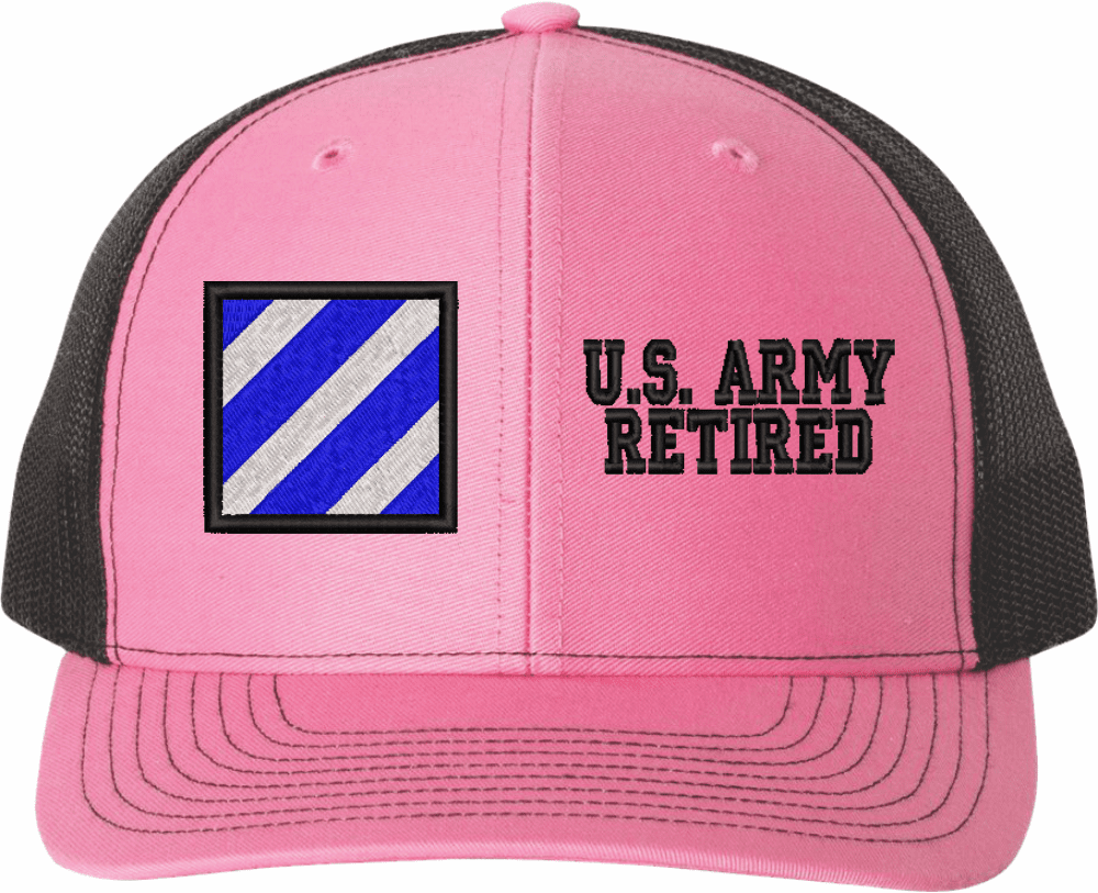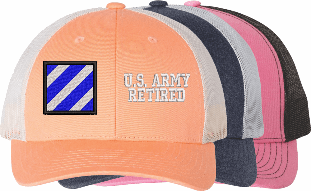 MilitaryBest is proud to offer this Mesh Back U.S. Army 3rd Infantry Division Retired Women's Split-Cap. The design is embroidered onto a 6x panel mid/low profile mesh back cap and is crisp, clean, and sure to be loved by all! As with all MilitaryBest caps and apparel your satisfaction is guaranteed!Caps ordered with embroidered back text requires an additional 1 to 2 days of production time. All personalized caps will be embroidered in ALL CAPITAL LETTERS. Caps personalized with back text are not returnable unless there is a material defect in the cap.