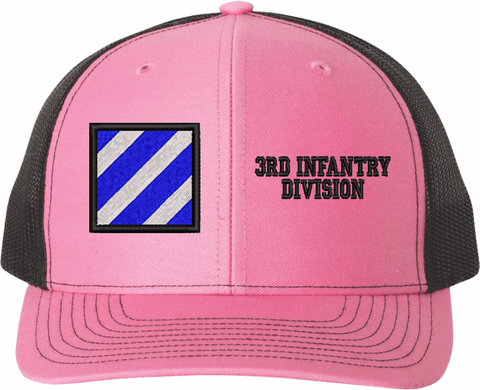 MilitaryBest is proud to offer this Mesh Back U.S. Army 3rd Infantry Division Women's Split-Cap. The design is embroidered onto a 6x panel mid/low profile mesh back cap and is crisp, clean, and sure to be loved by all! As with all MilitaryBest caps and apparel your satisfaction is guaranteed!Caps ordered with embroidered back text requires an additional 1 to 2 days of production time. All personalized caps will be embroidered in ALL CAPITAL LETTERS. Caps personalized with back text are not returnable unless there is a material defect in the cap.
