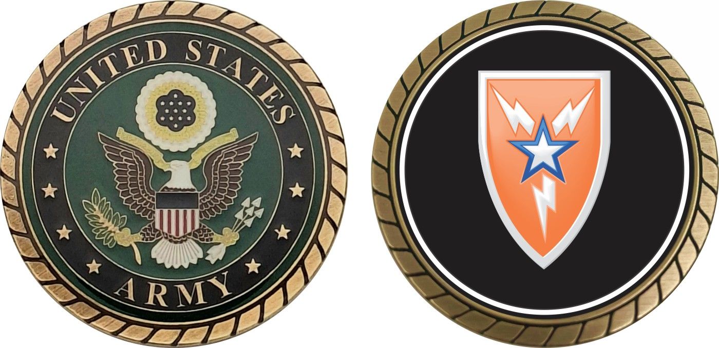 This 1 3/4” 3rd Signal Brigade Patch Challenge Coin is proudly offered by Militarybest. This Officially Licensed Army coin has beautiful enamel finish on one side and an organized crisp clean design on the opposite side.