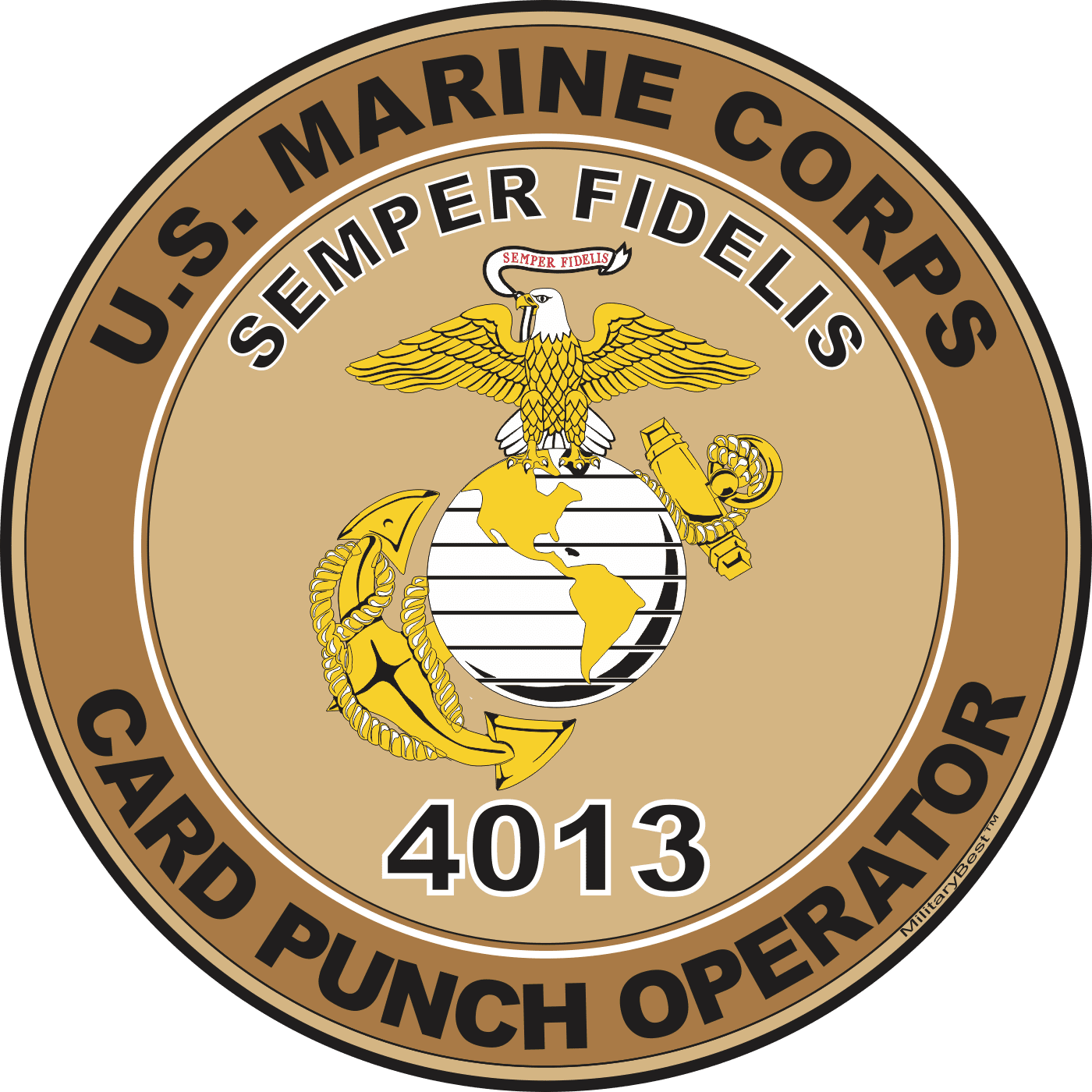 MilitaryBest is proud to offer this U.S.M.C. MOS 4013 Card Punch Operator Decal. This U.S. Marine Corps MOS Decal is a great way to show your Marine Pride. All MilitaryBest Marine Corps stickers are printed using high-quality vinyl and U.V. resistant ink. Each is then cured, laminated and die cut for a beautiful crisp, clean and professional look. This U.S.M.C. MOS 4013 Card Punch Operator Decal, as well as, any other MilitaryBest.com decal is proudly Made in the USA at our facilities in Scottsboro, AL. Select desired quantity and size from the menu above.Features: