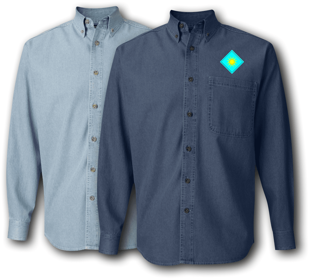Each 40th Infantry Division Denim shirt is made of 6.5 oz., 100% cotton denim, Button-down collar with woodtone buttons, Three woodtone buttons on adjustable placket cuff, Double-needle STITCHING throughout, felled seams, Left chest pocket, Two-ply back yoke and locker loop, and a seamless body with set-in sleeves. Enjoy your shirt!