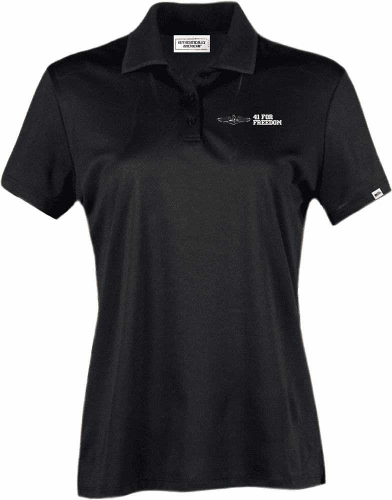 MilitaryBest proudly offers a top-quality U.S. Navy Enlisted Silver Dolphins 41 For Freedom Women's Moisture Wicking Polo made in the USA by Authentically American whom we have proudly partnered with.- Proudly Made and Embroidered in the USA.