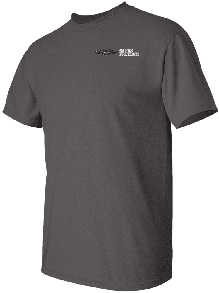 Note: Some of the Color Options pictured may not be available. Available Color Options are listed on the drop down menu above.MilitaryBest is proud to offer this quality U.S. Navy Enlisted Silver Dolphins 41 For Freedom T Shirt. This Gildan brand short sleeve t-shirt is made using a 6 oz pre-shrunk 100% cotton material. These quality Military T Shirts are proudly embroidered at our facilities in Scottsboro, AL. Support the Navy MWR program by purchasing only from Licensed Vendors.