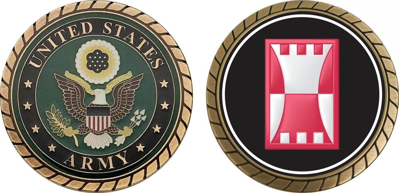 This 1 3/4” 416th Engineer Corps Command Patch Challenge Coin is proudly offered by Militarybest. This Officially Licensed Army coin has beautiful enamel finish on one side and an organized crisp clean design on the opposite side.