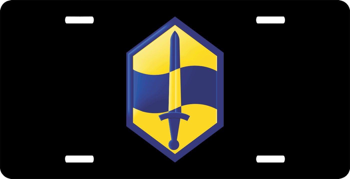 This 460th Chemical Brigade PatchLicense Plate is made from heavy gauge aluminum and has a baked enamel finish to last for many years of use. Each plate measures 5 15/16" x 11 15/16". This license plate would make a wonderful addition to your collection or a great gift.