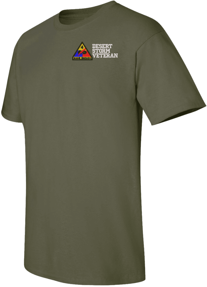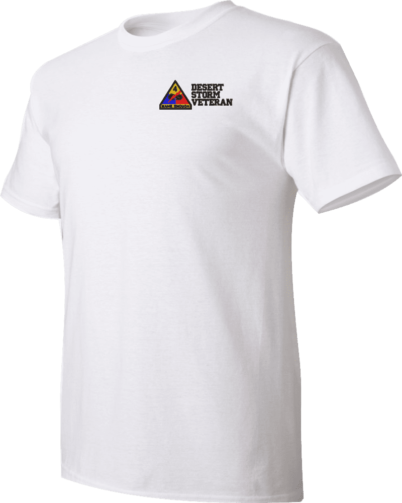 Note: Some of the Color Options pictured may not be available. Available Color Options are listed on the drop down menu above.MilitaryBest is proud to offer this quality 4th Armored Division Desert Storm Veteran T Shirt. This Gildan brand short sleeve t-shirt is made using a 6 oz pre-shrunk 100% cotton material. These quality Military T Shirts are proudly embroidered at our facilities in Scottsboro, AL. Support the Army MWR program by purchasing only from Licensed Vendors.