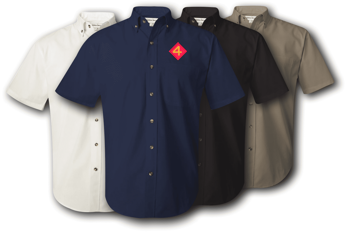 Militarybest is proud to offer this custom embroidered 4th Division Twill Button Down Shirt. Each is embroidered with high quality Rapos thread utilizing our in house "Happy Brand" Embroidering Machines.