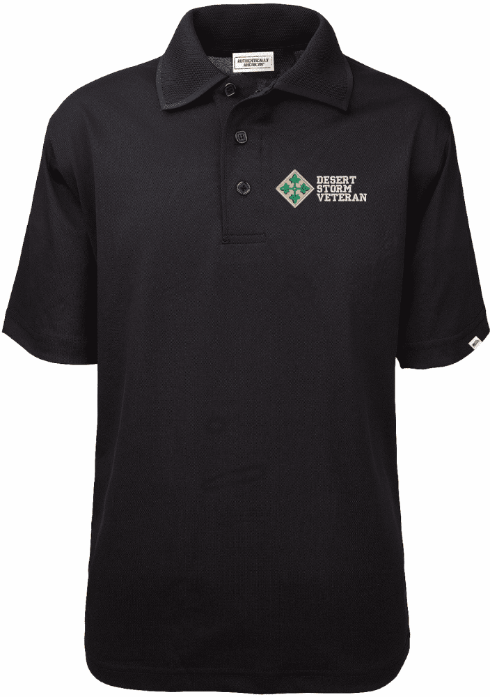 MilitaryBest proudly offers a top-quality 4th Infantry Division Desert Storm Veteran Authentically American Mens Moisture Wicking Polo made in the USA by Authentically American whom we have proudly partnered with.- Proudly Made and Embroidered in the USA.