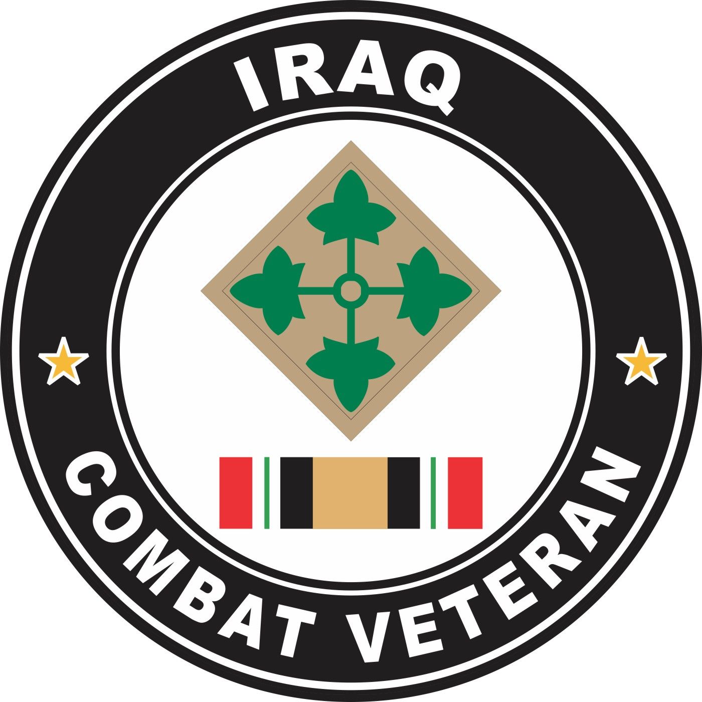 MilitaryBest is proud to offer this 4th Infantry Division Iraq Combat Veteran Decal Made in the USA at our facilities in Scottsboro, Alabama using the finest ink and vinyl available. We have been producing high quality Military Decals for over 15 years and we guarantee the quality of each one. A portion of the sale of this decal goes to support the MWR (Morale, Welfare, & Recreation) programs of the different branches of the U.S. Military. For bulk pricing for custom and wholesale decals click here: Custom & Wholesale Decals!*While many of our customers use our decals on a variety of surfaces. Their intended purpose is for windshield applications
