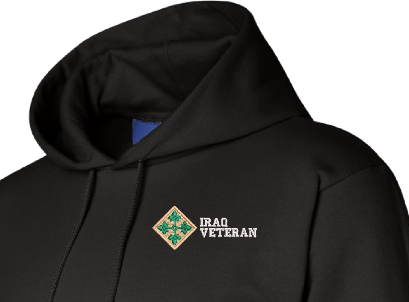 MilitaryBest is proud to offer this quality 4th Infantry Division Iraq Veteran Hoodie. Each U.S. Army Hoodie is direct embroidered onto either a Champion or Gildan brand Hoodie using a 9.5 oz 50/50 Cotton Poly blend material. These Military Hoodies are proudly embroidered at our facilities in Scottsboro, AL.