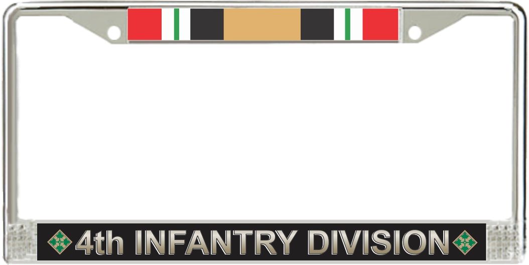 4th Infantry Division Iraq Veteran Service Ribbon License Plate FrameThis 4th Infantry Division Iraq Veteran License Plate Frame is made from the highest quality finished metal alloy. Each one is designed to provide years of use. Each is designed and produced in our facility in Scottsboro, Alabama.