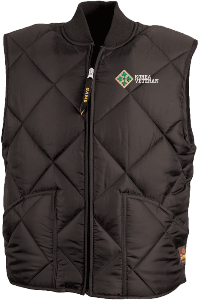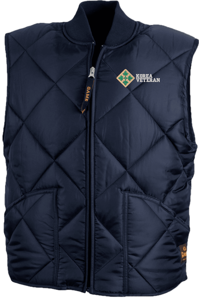 MilitaryBest is proud to offer this quality 4th Infantry Division Korea Veteran Game Sportswear Finest Vest. Our U.S. Army Vests feature, wind-resistant nylon taffeta shell, 5oz poly-fill lining with thermal knit backing, full front zipper, 2 outer pockets, and are machine washable. These Military Sportswear Vests are proudly embroidered at our facilities in Scottsboro, AL.