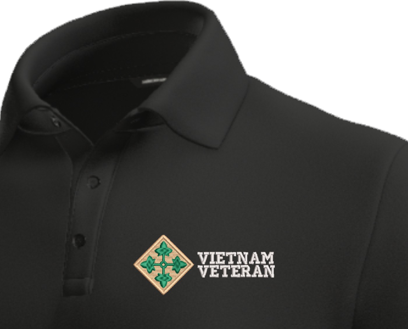 MilitaryBest is proud to offer this quality 4th Infantry Division Vietnam Veteran Polo. This Polo is made using 50/50 cotton/polyester moisture wicking material.These quality Military Polos are proudly embroidered at our facilities in Scottsboro, AL. Support the Army MWR program by purchasing only from Licensed Vendors.