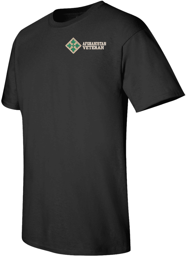Note: Some of the Color Options pictured may not be available. Available Color Options are listed on the drop down menu above.MilitaryBest is proud to offer this quality 4th Infantry Division Afghanistan Veteran T Shirt. This Gildan brand short sleeve t-shirt is made using a 6 oz pre-shrunk 100% cotton material. These quality Military T Shirts are proudly embroidered at our facilities in Scottsboro, AL. Support the Army MWR program by purchasing only from Licensed Vendors.