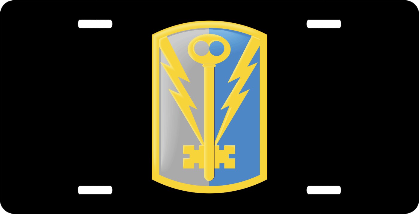 This 501st Military Intelligence Brigade PatchLicense Plate is made from heavy gauge aluminum and has a baked enamel finish to last for many years of use. Each plate measures 5 15/16" x 11 15/16". This license plate would make a wonderful addition to your collection or a great gift.