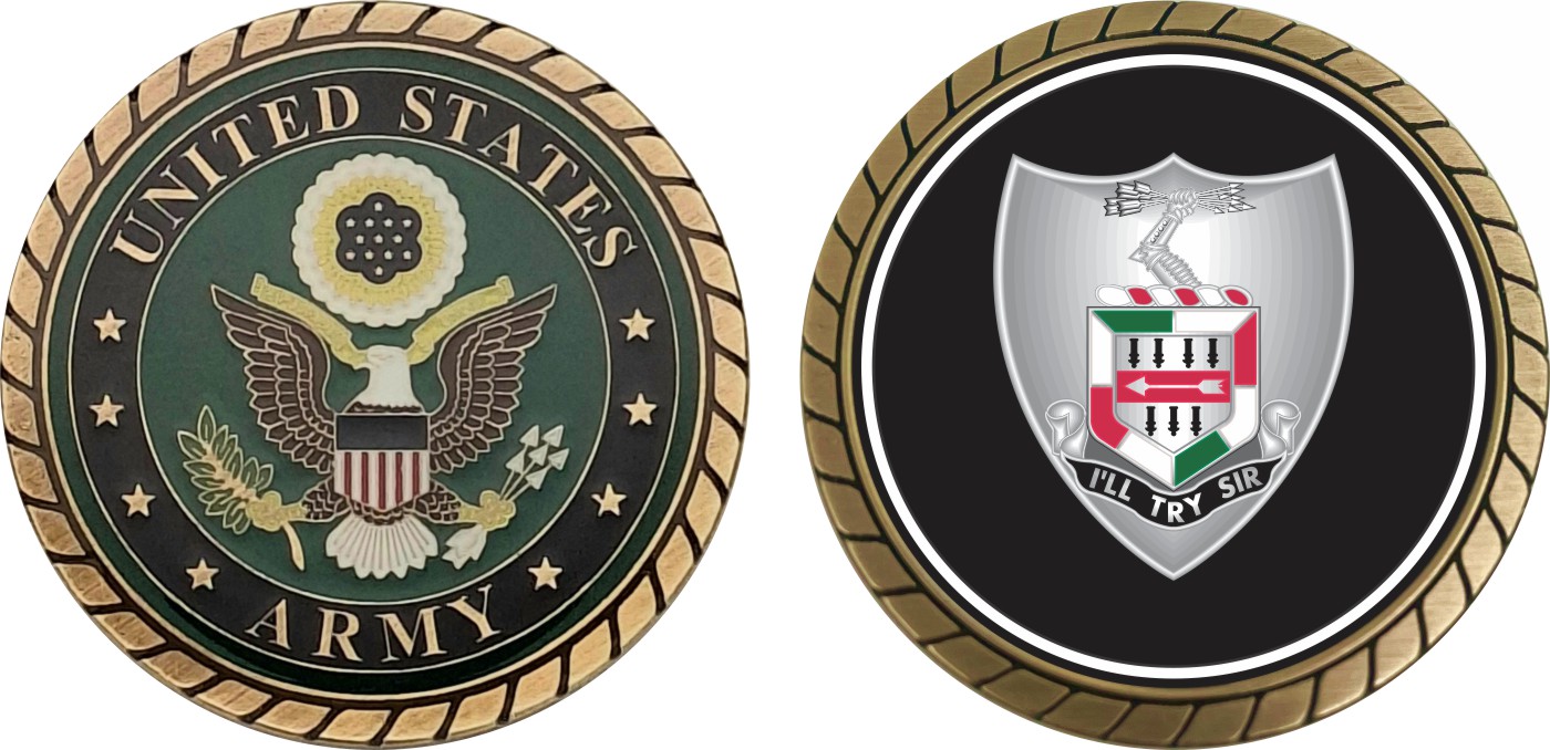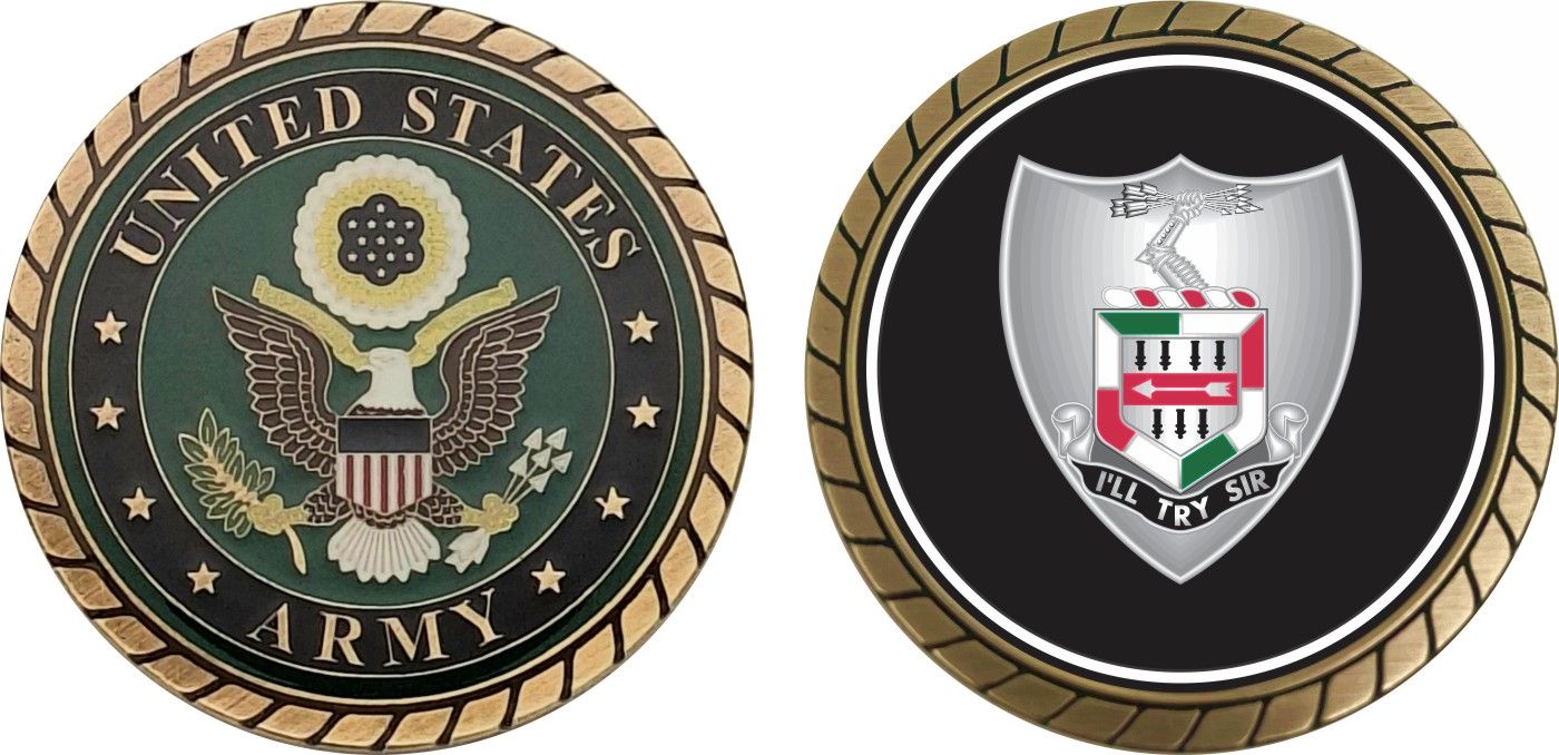 This 1 3/4” 5th Infantry Brigade Unit Crest Challenge Coin is proudly offered by Militarybest. This Officially Licensed Army coin has beautiful enamel finish on one side and an organized crisp clean design on the opposite side.