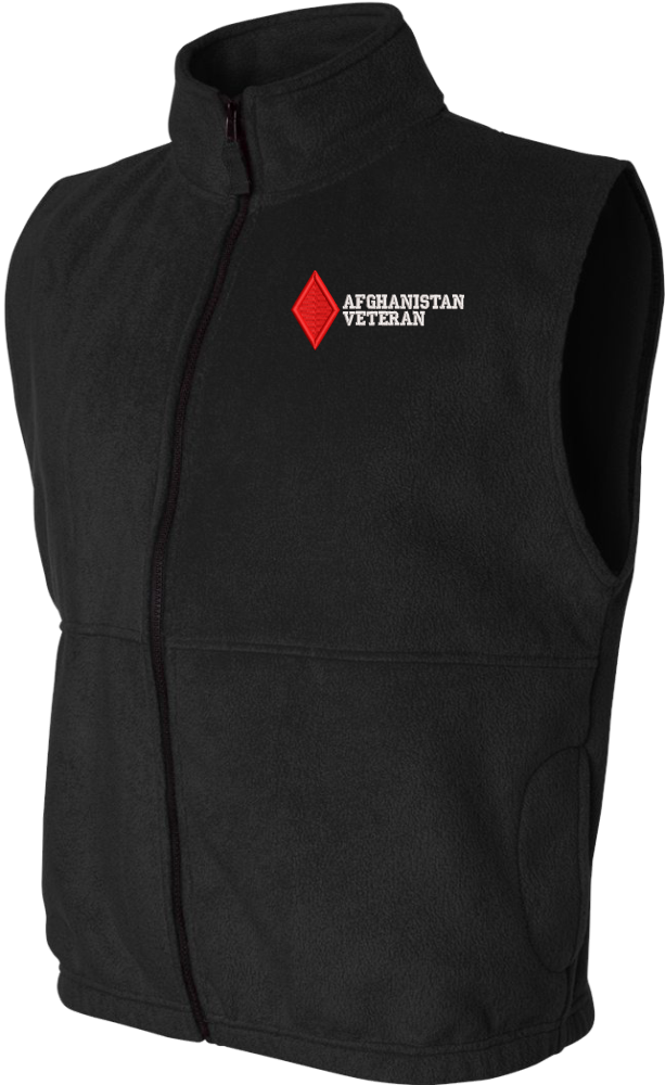 Due to supply chain disruptions, some colors and sizes may not be available in the same Brand, in these cases a brand of comparable quality will be used. Feel free to call in advance of your order, with questions you may have.MilitaryBest is proud to offer this quality 5th Infantry Division Afghanistan Veteran Full-Zip Fleece Vest. Our U.S. Army Full Zip Fleece Vest features a convertible collar with dyed-to-match zipper pull and oversized nylon reinforced slash pockets. These Military Vests are proudly embroidered at our facilities in Scottsboro, AL.