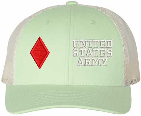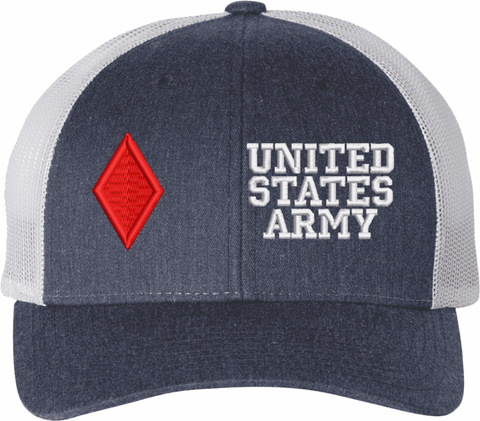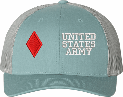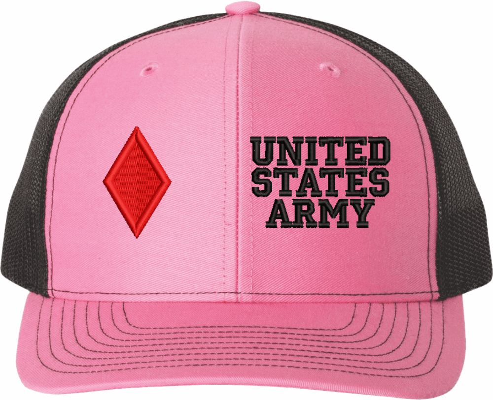 MilitaryBest is proud to offer this Mesh Back U.S. Army 5th Infantry Division United States Army Women's Split-Cap. The design is embroidered onto a 6x panel mid/low profile mesh back cap and is crisp, clean, and sure to be loved by all! As with all MilitaryBest caps and apparel your satisfaction is guaranteed!Caps ordered with embroidered back text requires an additional 1 to 2 days of production time. All personalized caps will be embroidered in ALL CAPITAL LETTERS. Caps personalized with back text are not returnable unless there is a material defect in the cap.