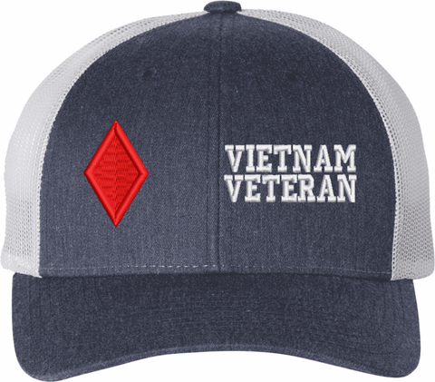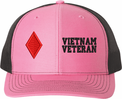 MilitaryBest is proud to offer this Mesh Back U.S. Army 5th Infantry Division Vietnam Veteran Women's Split-Cap. The design is embroidered onto a 6x panel mid/low profile mesh back cap and is crisp, clean, and sure to be loved by all! As with all MilitaryBest caps and apparel your satisfaction is guaranteed!Caps ordered with embroidered back text requires an additional 1 to 2 days of production time. All personalized caps will be embroidered in ALL CAPITAL LETTERS. Caps personalized with back text are not returnable unless there is a material defect in the cap.