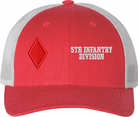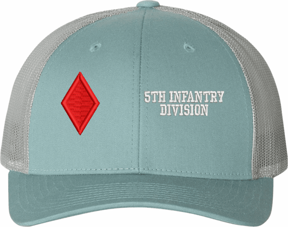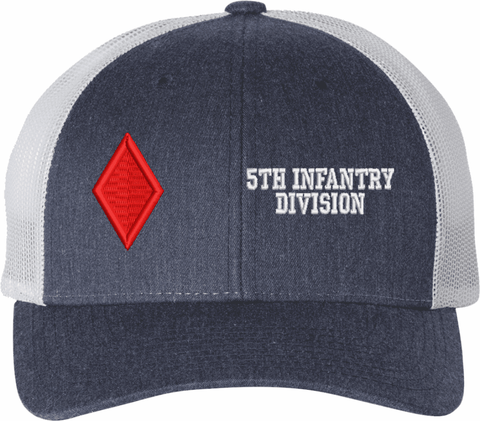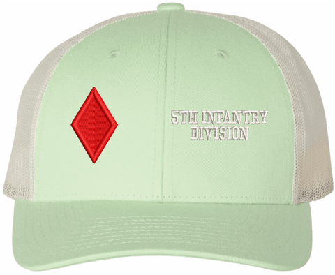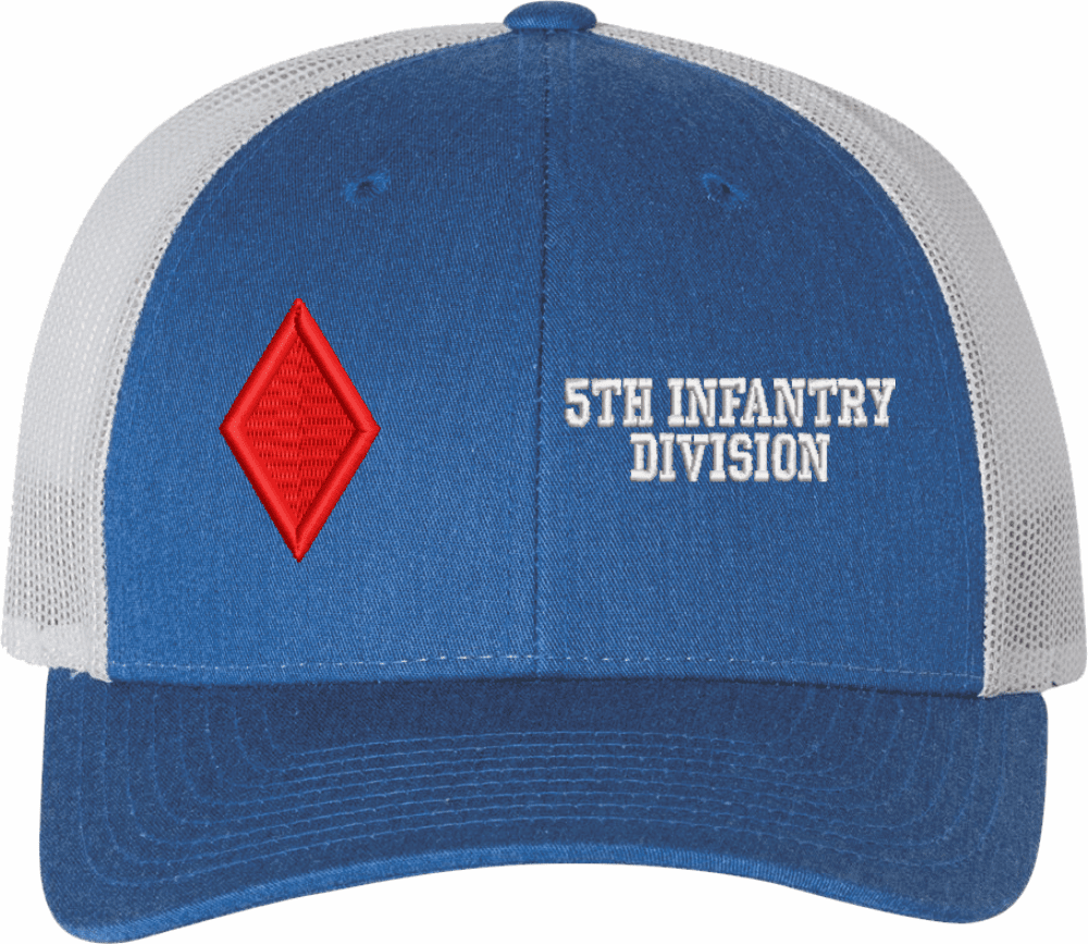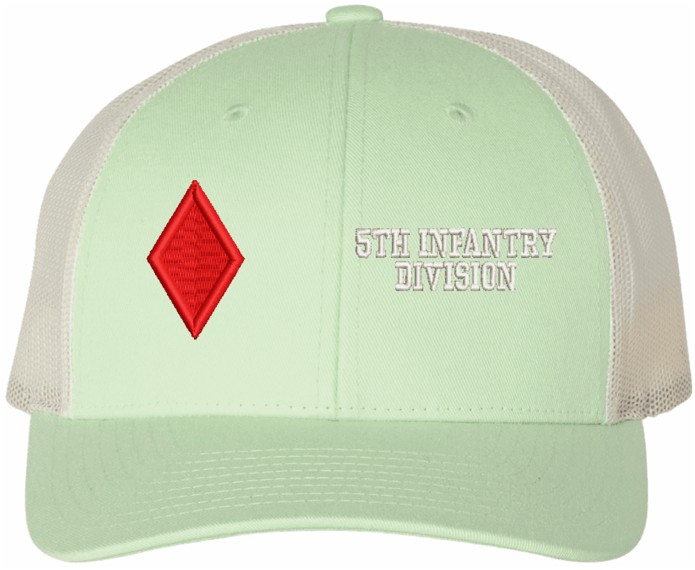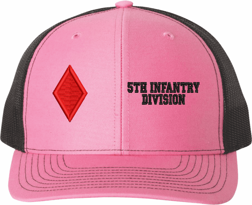 MilitaryBest is proud to offer this Mesh Back U.S. Army 5th Infantry Division Women's Split-Cap. The design is embroidered onto a 6x panel mid/low profile mesh back cap and is crisp, clean, and sure to be loved by all! As with all MilitaryBest caps and apparel your satisfaction is guaranteed!Caps ordered with embroidered back text requires an additional 1 to 2 days of production time. All personalized caps will be embroidered in ALL CAPITAL LETTERS. Caps personalized with back text are not returnable unless there is a material defect in the cap.