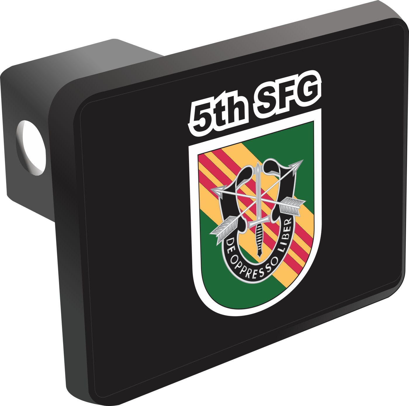 This 5th Special Forces Group Vietnam Green Flash Hitch Cover is proudly Made in the USA. Each Hitch Cover's face plate measures 4.7" x 3.4" and is applied on a black heavy duty injection molded plastic 2" hitch cover; link pin not included. The face plate of the hitch cover is sublimation printed to provide a beautiful glossy finish sure to catch the eye. This hitch cover would make a wonderful addition to your truck or other vehicle.A percentage of the sale of each MilitaryBest item is forwarded to the licensing departments of each respective branch of service in support of the MWR (Morale, Welfare, & Recreation) program. These payments are made by either ALL4U LLC or the wholesaler from where the item originated. Our team thanks you for your service and your support of these programs.