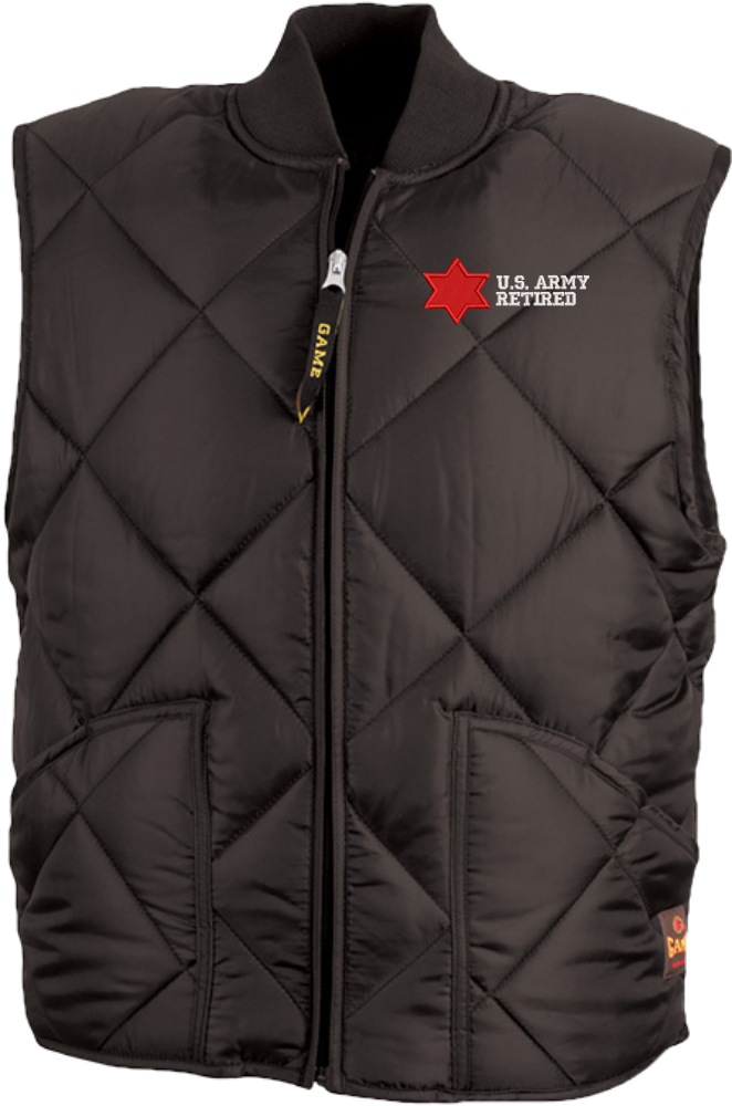 MilitaryBest is proud to offer this quality 6th Infantry Division Retired Game Sportswear Finest Vest. Our U.S. Army Vests feature, wind-resistant nylon taffeta shell, 5oz poly-fill lining with thermal knit backing, full front zipper, 2 outer pockets, and are machine washable. These Military Sportswear Vests are proudly embroidered at our facilities in Scottsboro, AL.