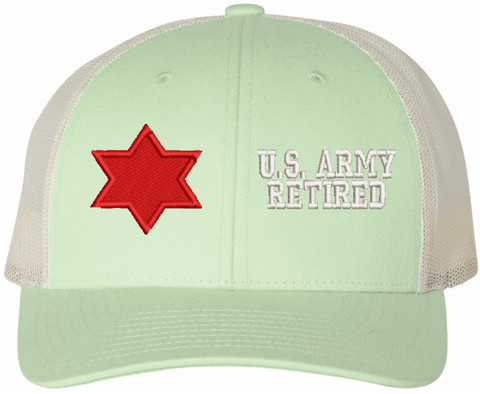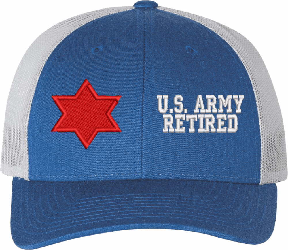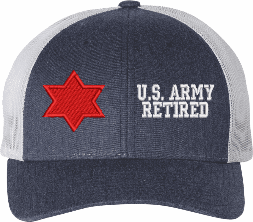 MilitaryBest is proud to offer this Mesh Back U.S. Army 6th Infantry Division Retired Women's Split-Cap. The design is embroidered onto a 6x panel mid/low profile mesh back cap and is crisp, clean, and sure to be loved by all! As with all MilitaryBest caps and apparel your satisfaction is guaranteed!Caps ordered with embroidered back text requires an additional 1 to 2 days of production time. All personalized caps will be embroidered in ALL CAPITAL LETTERS. Caps personalized with back text are not returnable unless there is a material defect in the cap.