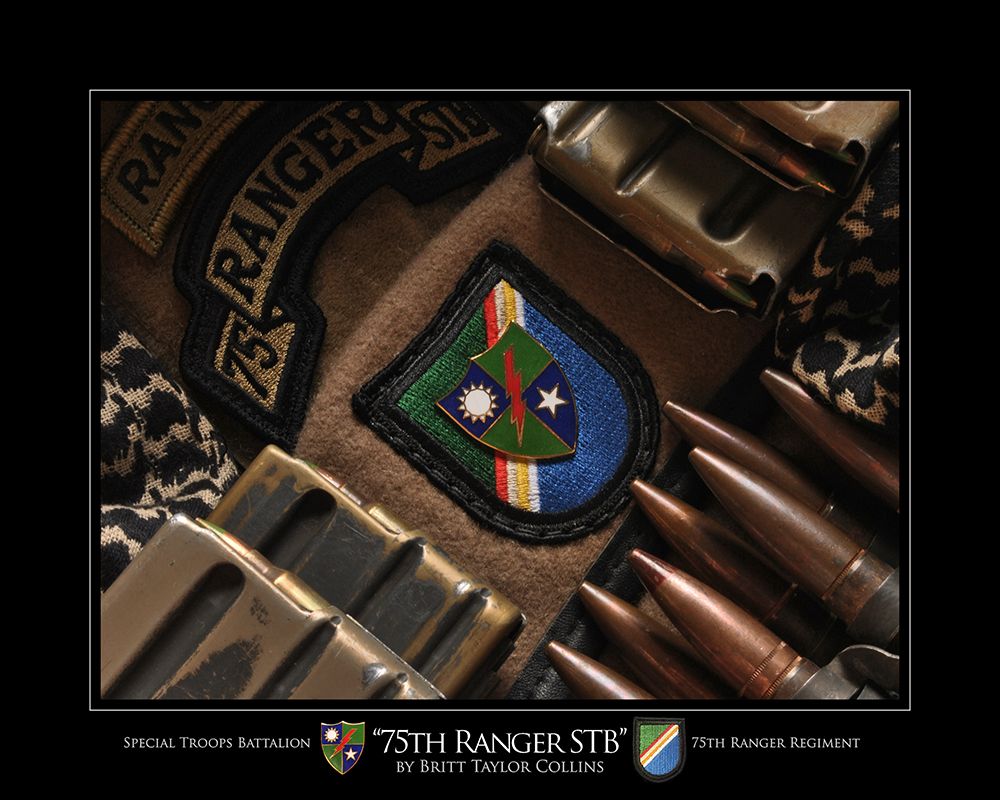 TO FULLY APPRECIATE THE DETAIL IN THIS PIECE, PLEASE CLICK ON THE IMAGE ABOVE TO ENLARGE.We are extremely proud and honored to have partnered with Britt Taylor Collins, “The Veterans’ Artist”, to offer an extensive line of Military Art, particularly these incredible Giclee LenzPrints. This “75th RANGER STB" Special Troops Battalion fine Military Art Piece is printed with Archival Fade Resistant inks on high quality Museum Grade paper. Each U.S. Army art piece is printed one at a time and inspected by the artist, Britt Taylor Collins. After inspection this piece is signed by Britt himself.