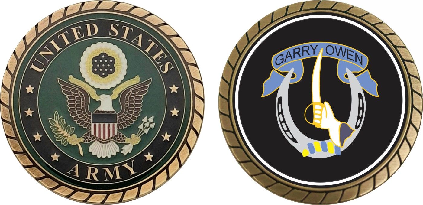 This 1 3/4” 7th Cavalry Brigade Patch Challenge Coin is proudly offered by Militarybest. This Officially Licensed Army coin has beautiful enamel finish on one side and an organized crisp clean design on the opposite side.