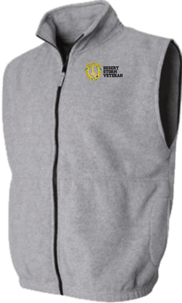 Due to supply chain disruptions, some colors and sizes may not be available in the same Brand, in these cases a brand of comparable quality will be used. Feel free to call in advance of your order, with questions you may have.MilitaryBest is proud to offer this quality 7th Cavalry Regiment Desert Storm Veteran Full-Zip Fleece Vest. Our U.S. Army Full Zip Fleece Vest features a convertible collar with dyed-to-match zipper pull and oversized nylon reinforced slash pockets. These Military Vests are proudly embroidered at our facilities in Scottsboro, AL.