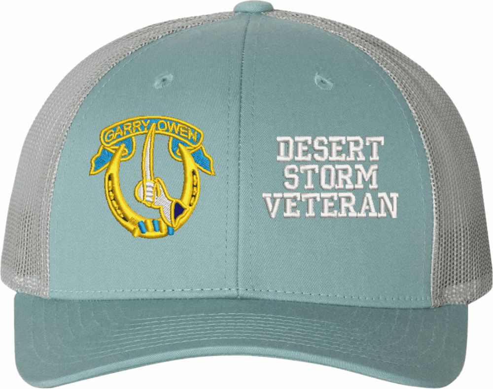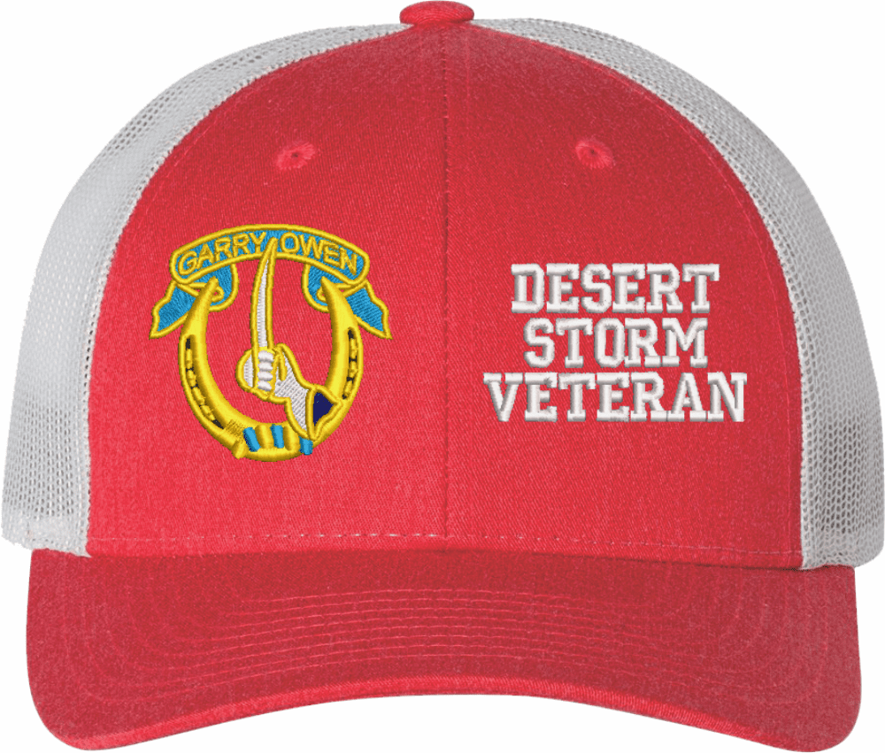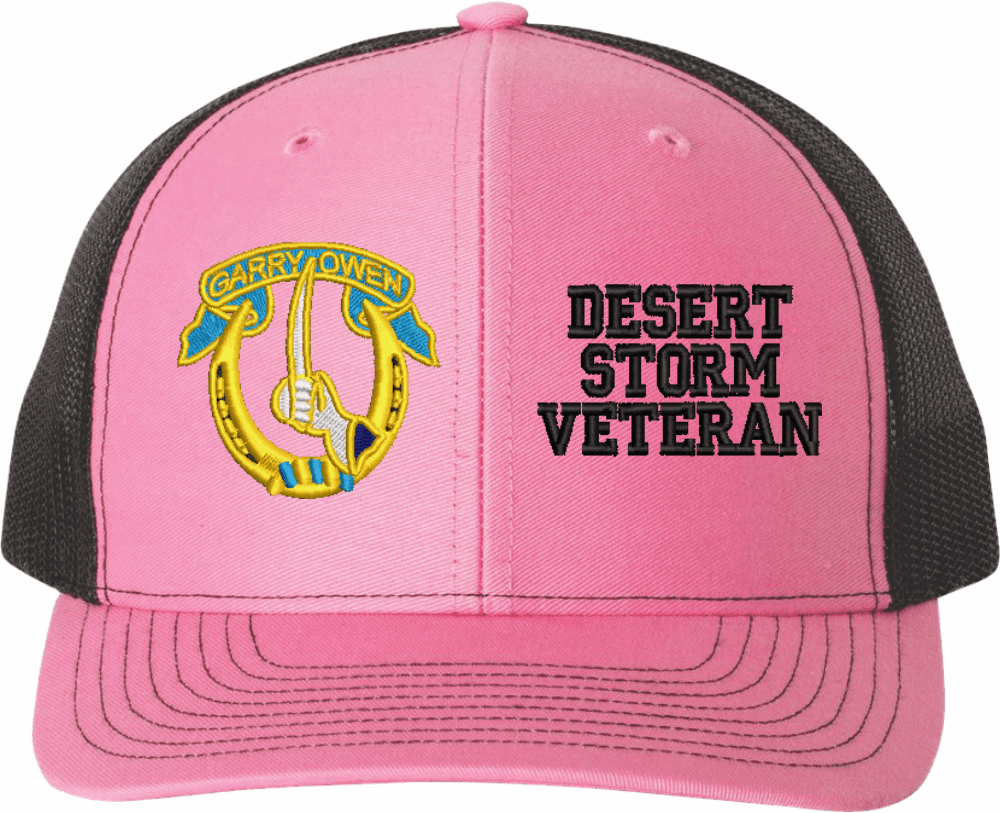 MilitaryBest is proud to offer this Mesh Back U.S. Army 7th Cavalry Regiment Desert Storm Veteran Women's Split-Cap. The design is embroidered onto a 6x panel mid/low profile mesh back cap and is crisp, clean, and sure to be loved by all! As with all MilitaryBest caps and apparel your satisfaction is guaranteed!Caps ordered with embroidered back text requires an additional 1 to 2 days of production time. All personalized caps will be embroidered in ALL CAPITAL LETTERS. Caps personalized with back text are not returnable unless there is a material defect in the cap.
