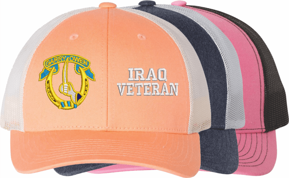 MilitaryBest is proud to offer this Mesh Back U.S. Army 7th Cavalry Regiment Iraq Veteran Women's Split-Cap. The design is embroidered onto a 6x panel mid/low profile mesh back cap and is crisp, clean, and sure to be loved by all! As with all MilitaryBest caps and apparel your satisfaction is guaranteed!Caps ordered with embroidered back text requires an additional 1 to 2 days of production time. All personalized caps will be embroidered in ALL CAPITAL LETTERS. Caps personalized with back text are not returnable unless there is a material defect in the cap.