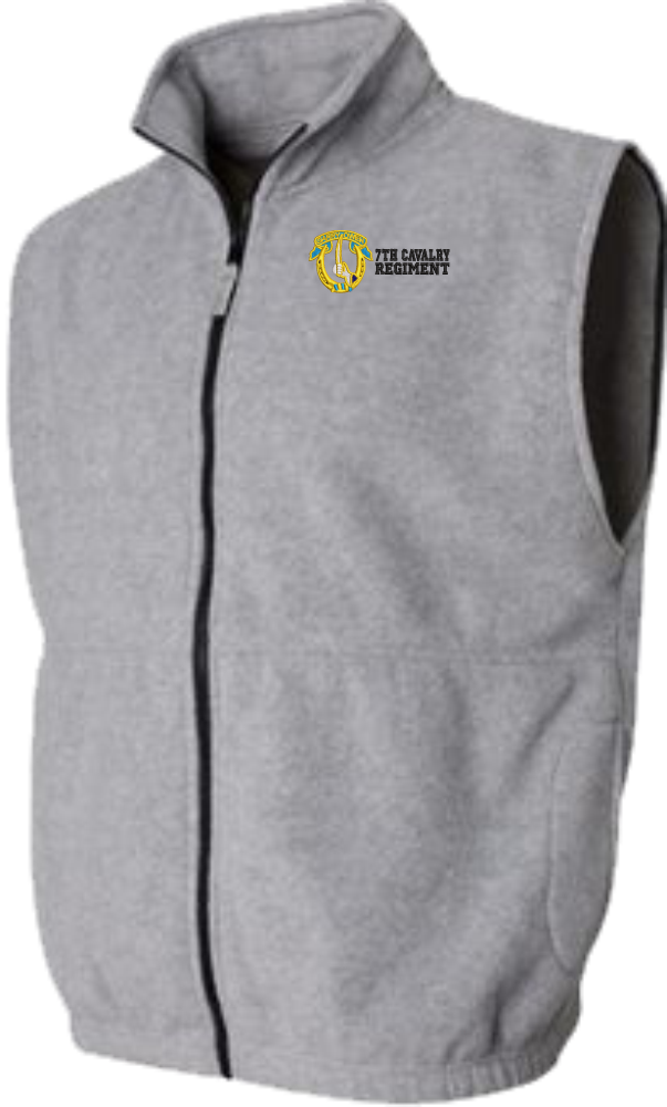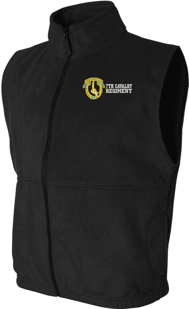 Due to supply chain disruptions, some colors and sizes may not be available in the same Brand, in these cases a brand of comparable quality will be used. Feel free to call in advance of your order, with questions you may have.MilitaryBest is proud to offer this quality 7th Cavalry Regiment Full-Zip Fleece Vest. Our U.S. Army Vests features a convertible collar with dyed-to-match zipper pull and oversized nylon reinforced slash pockets. These Military Vests are proudly embroidered at our facilities in Scottsboro, AL.