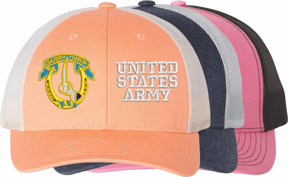 MilitaryBest is proud to offer this Mesh Back U.S. Army 7th Cavalry Regiment United States Army Women's Split-Cap. The design is embroidered onto a 6x panel mid/low profile mesh back cap and is crisp, clean, and sure to be loved by all! As with all MilitaryBest caps and apparel your satisfaction is guaranteed!Caps ordered with embroidered back text requires an additional 1 to 2 days of production time. All personalized caps will be embroidered in ALL CAPITAL LETTERS. Caps personalized with back text are not returnable unless there is a material defect in the cap.