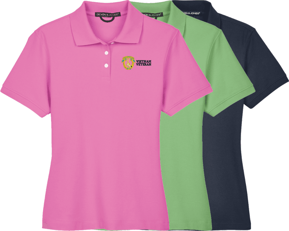 Note: Some of the Color Options pictured may not be available. Available Color Options are listed on the drop down menu above.MilitaryBest is proud to offer this 7th Cavalry Regiment Vietnam Veteran Women's Devon & Jones Polo. This Ladies Polo features Rib knit cuffs, Dura-Pearl Buttons, and a Three-Button Placket. These Polos are made with 6.8 oz., 100% Peruvian Pima Cotton and are proudly embroidered at our facilities in Scottsboro, AL.