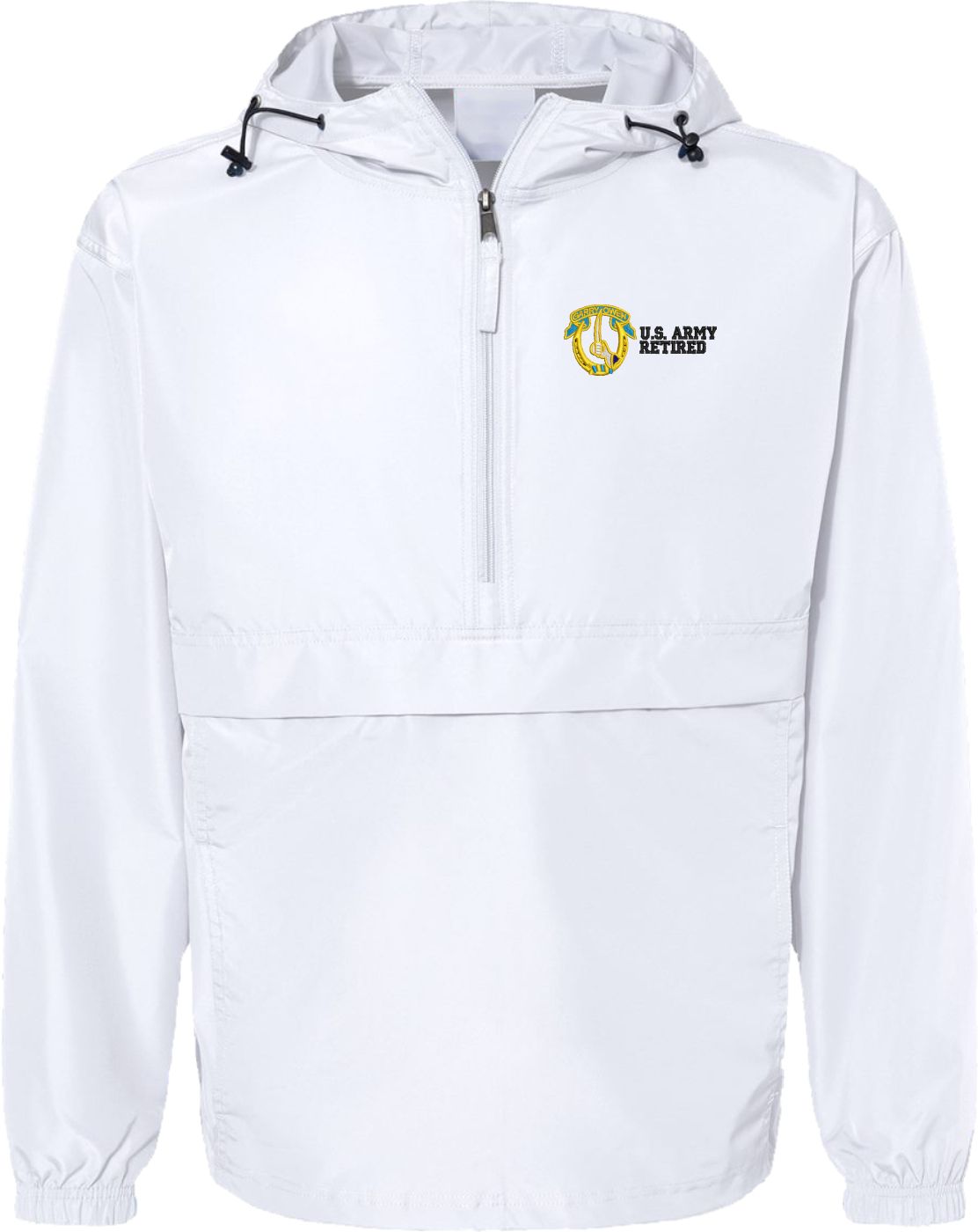 MilitaryBest is proud to offer this quality 7th Cavalry Regiment Retired Hooded Windbreaker. Also known as an Anorak Jacket, this windbreaker is designed to keep wind and water out. With a design embroidered over the left chest, this windbreaker is embroidered to order at our facilities in Scottsboro, AL.. This windbreaker can be packed into the mesh lined pouch pocket for a more portable method of storage.- 100% Polyester