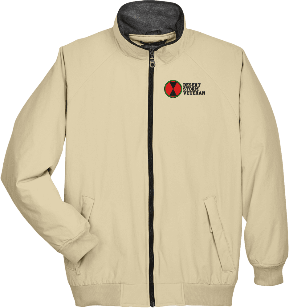 Note: Some of the Color Options pictured may not be available. Available Color Options are listed on the drop down menu above.MilitaryBest is proud to offer this quality U. S. Army 7th Infantry Division Desert Storm Veteran 3 Season Jacket. Each 7th Infantry Division 3 season jacket is made from a 3-Layer system consisting of a nylon shell, an insulator layer, Nylon-lined sleeves, and an inside layer of fleece for comfort. Each jacket’s features include a sturdy black enamel front-zipper, raglan sleeves, outsize zip pockets, an inside zip security pocket, YKK zippers, and a banded-bottom. As with all MilitaryBest products, your satisfaction is guaranteed! This jacket can be worn in fall, winter, and spring and is proudly custom embroidered at our facilities in Scottsboro, AL.
