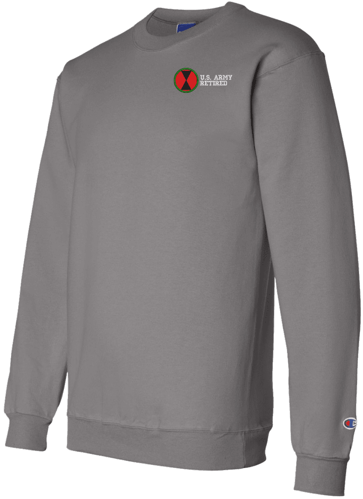 MilitaryBest is proud to offer this quality 7th Infantry Division Retired Sweatshirt. Each U.S. Army sweatshirt is direct embroidered onto either a Champion or Jerzees brand sweatshirt using a 9.5 oz 50/50 Cotton Poly blend material. These Military Sweatshirts are proudly embroidered at our facilities in Scottsboro, AL.