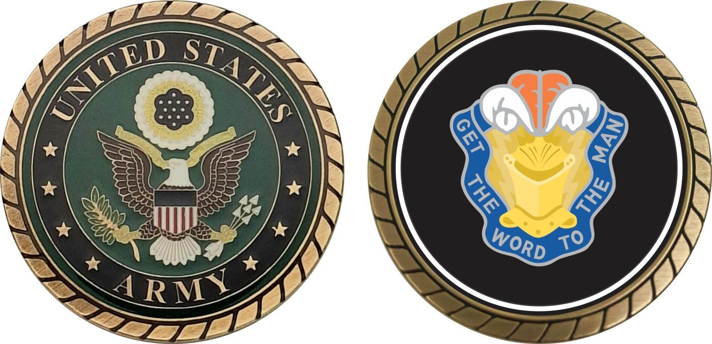 This 1 3/4” 7th Signal Brigade Unit Crest Challenge Coin is proudly offered by Militarybest. This Officially Licensed Army coin has beautiful enamel finish on one side and an organized crisp clean design on the opposite side.