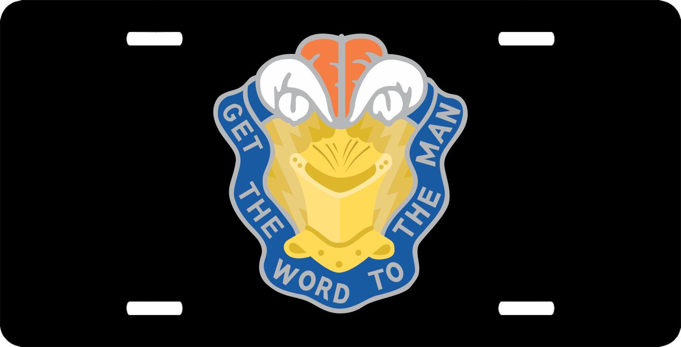 This 7th Signal Brigade Unit CrestLicense Plate is made from heavy gauge aluminum and has a baked enamel finish to last for many years of use. Each plate measures 5 15/16" x 11 15/16". This license plate would make a wonderful addition to your collection or a great gift.