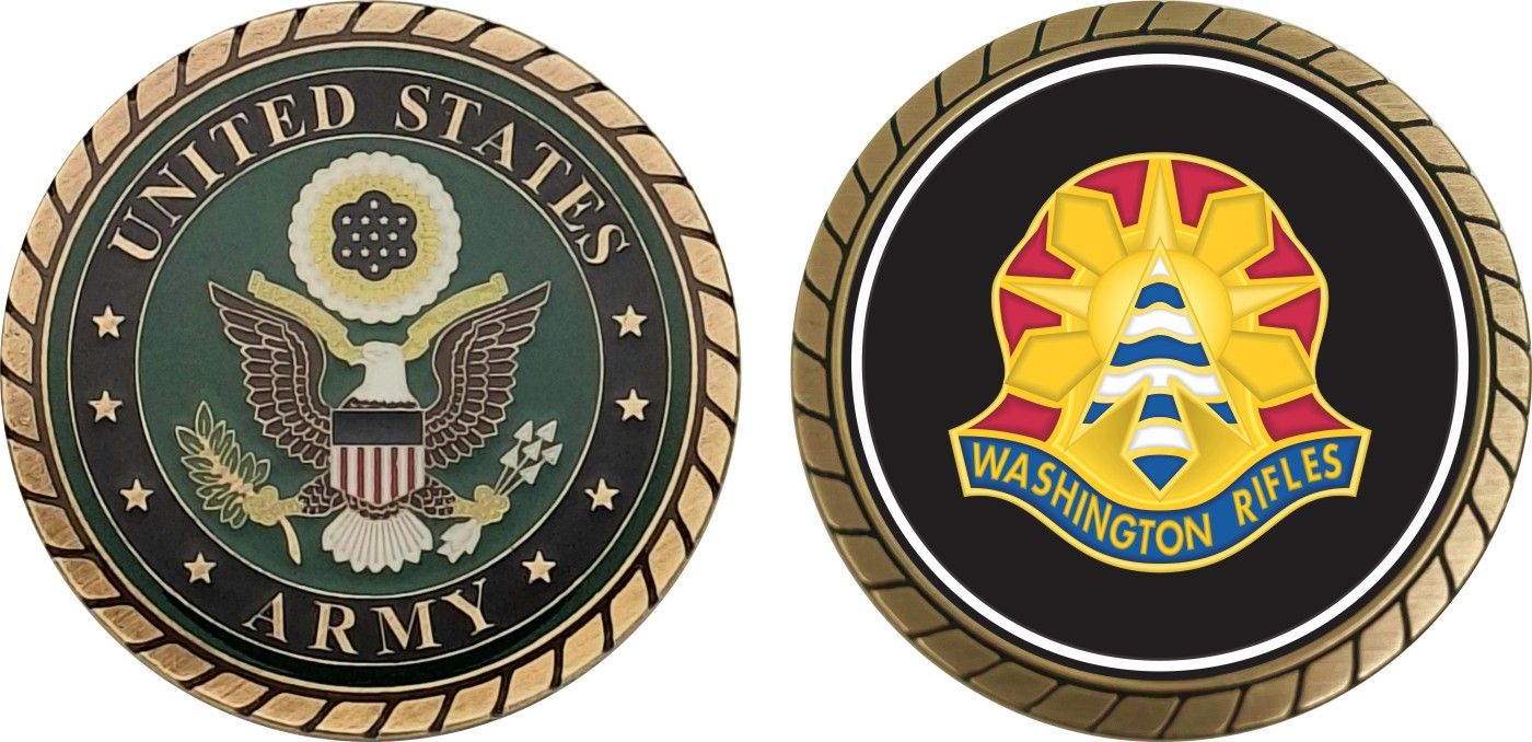 This 1 3/4” 81st Infantry Brigade Unit Crest Challenge Coin is proudly offered by Militarybest. This Officially Licensed Army coin has beautiful enamel finish on one side and an organized crisp clean design on the opposite side.
