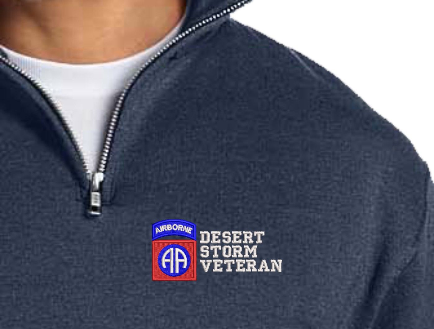 MilitaryBest is proud to offer this 82nd Airborne Division Desert Storm Veteran Embroidered Quarter-Zip Pullover. This quality shirt is embroidered by our MilitaryBest team in Northeast Alabama.PRODUCT FEATURES