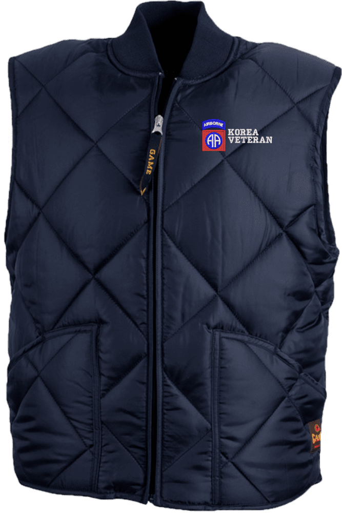 MilitaryBest is proud to offer this quality 82ND Airborne Division Korea Veteran Game Sportswear Finest Vest. Our U.S. Army Vests feature, wind-resistant nylon taffeta shell, 5oz poly-fill lining with thermal knit backing, full front zipper, 2 outer pockets, and are machine washable. These Military Sportswear Vests are proudly embroidered at our facilities in Scottsboro, AL.