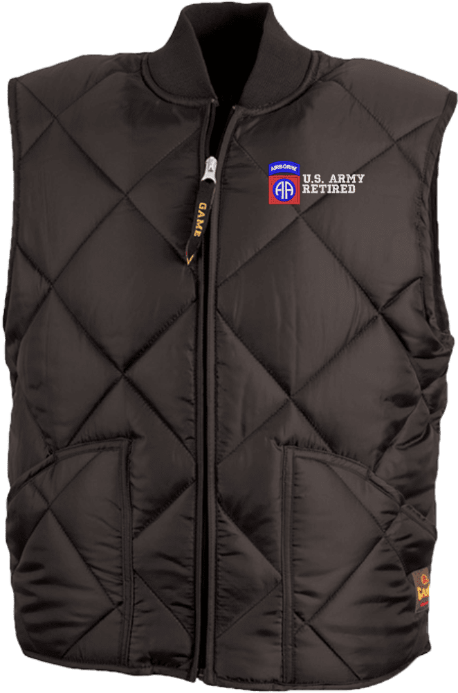 MilitaryBest is proud to offer this quality 82ND Airborne Division Retired Game Sportswear Finest Vest. Our U.S. Army Vests feature, wind-resistant nylon taffeta shell, 5oz poly-fill lining with thermal knit backing, full front zipper, 2 outer pockets, and are machine washable. These Military Sportswear Vests are proudly embroidered at our facilities in Scottsboro, AL.